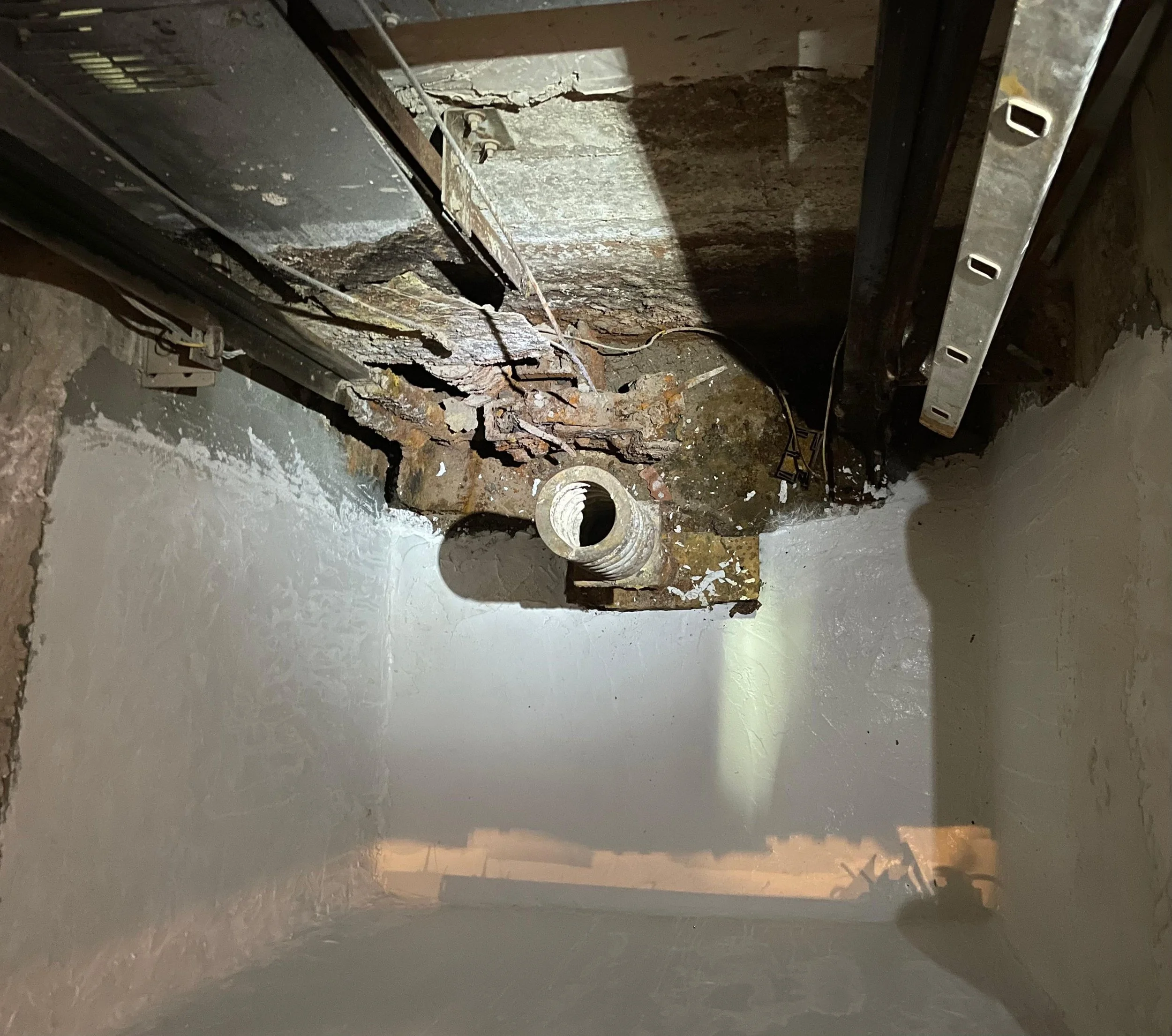 El ascensor llevaba varios años parado y, de forma inesperada, el cliente descubrió que el foso estaba completamente inundado. Tras realizar la impermeabilización con una empresa especializada, nos contactó para evaluar el alcance de los daños.